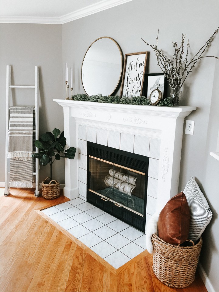 I that repainting the fireplace mantel really helped improve the look of the wall, and in January I finally decided to complete the entire look and repaint the entire accent wall. I’m not going to lie, I started to get a little attached lol but definitely not attached enough to keep it around.
